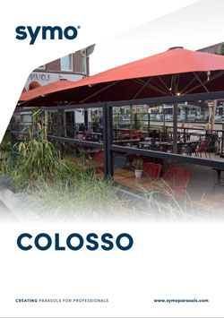 - The Colosso is the largest parasol in our range: dimensions up to 7x7m square or Ø8m round. This provides shade or a watertight roof for at least 50 seats, under a single parasol (1 seat per m2).