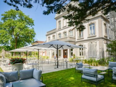 - La sombrilla redonda u octogonal Grandioso de Ø 6,5 m proporciona sombra o cubierta impermeable a al menos 34 sillas con una misma sombrilla (1 silla por m2).
