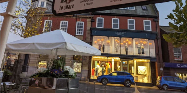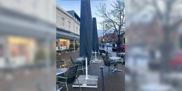 Andy’s klant Orlando Parraca, eigenaar van het stijlvolle en kosmopolitische Italiaanse café ‘Zest Food & Wine Bar”, koos voor twee 3mx3m MacSymo parasols met RGB LED-verlichting op batterijen en met tegelvoeten.